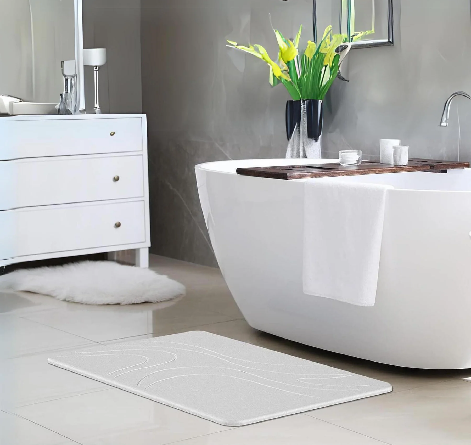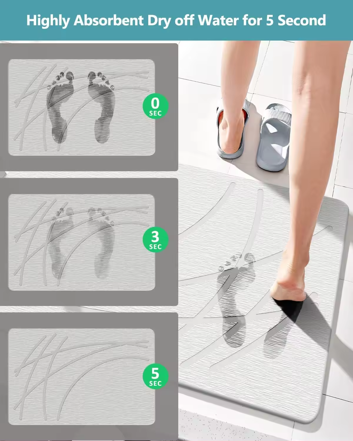 - Dry Up Quickly - Stop getting the bathroom wet. Step onto our nonslip stone bath mat and dry your feet quickly! Made with natural diatomite, it absorbs water and makes it evaporate in no time.